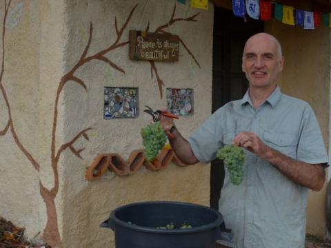 Megumi then had to leave – for a stint of peace work in the Middle East. I had a chat with the neighbours and noted that it would be a pity to waste all the grapes… And that's how I found myself offering to make their wine for them. So I got back into it – harvesting about 20 large 25-litre buckets of grapes and then hauling them up from their lower terraces to my work area. Treading them, a few kg at a time, into a pulp. Pouring them into the tub. Until, after a day and a half, I had another 200 litres of must.