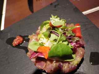 スペインと言えば、タパスですが、創作タパスを出すお店がありました。何と日本風。餃子、そば、サーモンの刺身風。そばは焼きそば風。私の好みからするとまあまあでした。餃子はお薦めです。