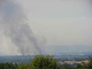 今現在でも私の真っ正面、タブアの向こう側から煙が立ち上っています。それも一カ所ではなく、ざっと見ただけでも7カ所から。一直線なので、やはり線路に沿って発生した火災なのでしょう。