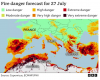 欧州、特に地中海沿いの国々は記録に迫る最高気温と猛暑熱波に覆われた。ギリシャでは、日中の暑い時間帯は危険なために日陰がないアテネのアクルポリスの丘が閉鎖され、ロードス島の山火事では大勢の観光客が避難を余儀なくされた。イタリアも南部は森林火災、北部は豪雨で異常気象に散々痛めつけられた。フランスも、スペインも熱波に苦しめられた。