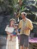式の始まりを告げる太鼓と歌が始まると、みんながゆっくりと楽隊(?)の後ろについて歩き始め、 七夕の飾り付けをした笹竹の下に立つ新郎新婦を囲む和になった。 明るい日差しの中、厳粛な雰囲気が流れる。進行役のアランが厳かに式を進める。「人生を共に歩むことを誓います」 二人が向かい合って握り合った手がリボンで結ばれる。