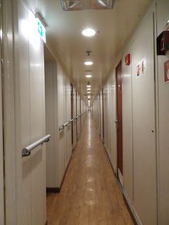船室がずらっと並んでいる船内の様子