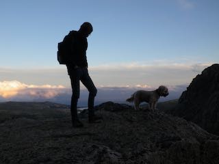 帰途につくころにはもうかなり暗くなっていた。途中3箇所にマーティンが道標として残してきたランプを目指して足を踏み外さないようにゆっくりと岩山を降りる。が、足の短い犬たちは怖がってなかなか降りてきてくれない。犬をなだめすかし、抱き抱えながらゆっくりと岩を降りる。気が気ではない。いつも持っているヘッドライトが役に立った。ヘッドライトがない人はスマホで岩道を照らす。