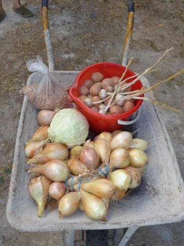 What I didn't expect was that Pedro's wife would return the favour a few weeks later with a whole wheelbarrow full of produce! There were 15kg potatoes, 10kg onions, dried chickpeas, garlic, cabbage... Surely way more than a few bits of vine were worth.
