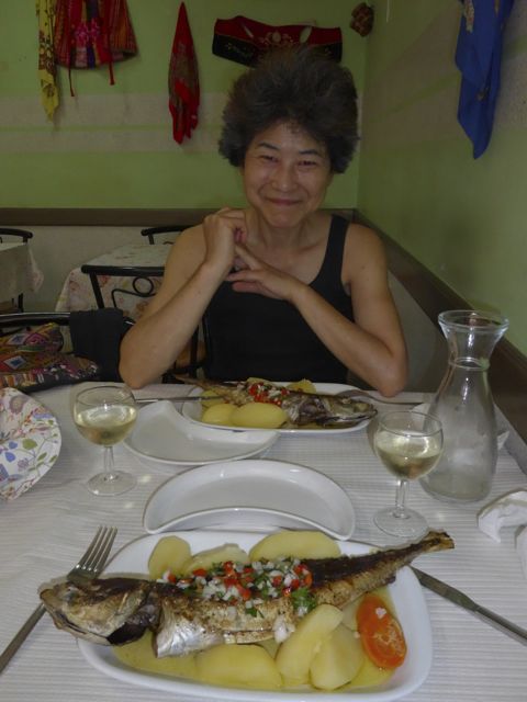 A simple lunch in Viana do Castelo, north of Porto. The standard paper 'tablecloth', bottomless carafe of vinho verde... No ceremony, but the freshest fish we've had for a long time!