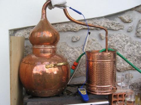 I do use it quite regularly, but for these large quantities it is a lot of work and very slow. Later in the year, though, I'll probably give some of my bagaço a second distillation in it to bring the alcohol content up a bit. After a second run through, it usually reaches about 75 vol%, which is more suitable for tinctures.