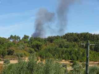 8月8日午後、庭仕事に取りかかろうとしていた矢先、タブア消防署のサイレンが鳴り響いた。山火事だ。庭から空を見上げても、庭木が邪魔をして、どこから煙が立ち上っているのか見えない。二階のベランダに出ると、目の前の丘の向こう側に黒い煙が細く立ち上っている。fogos.ptのサイトを見ると、直線距離で3キロ程のヴァルジアとカンドーサ村のあたりが出火元となっている。間もなく、空中消火機(消火機能のある飛行機やヘリ)が活動を開始。最初は2機、すぐに7機に増えた。